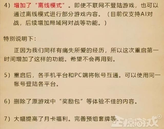 据悉该格斗游戏为一款3D对战卡牌格斗游戏,与2017年9月29日上线运营,4年后也就是2021年6月21日宣布停运。该格斗游戏在重启后也会增加部分文本,比如增加离线模式供玩者不登陆也能体验格斗游戏,后续还会增加“秘境快棋”玩法和数项卡包文本之类。非官方还宣布此次开服会给玩者送出随即阵营全套卡牌、多种不同传奇卡以及签到7天的100卡包等。
