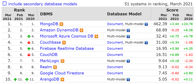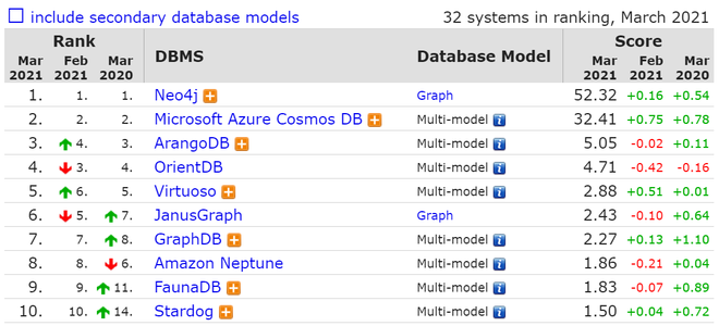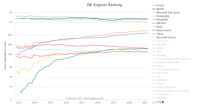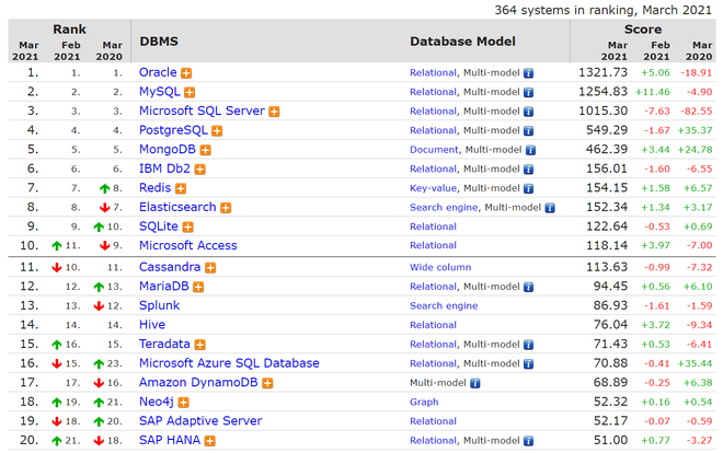 DB-Engines 3 月末盛行度名列已预览(如前所述 2 月末的总体统计数据发生变动)。