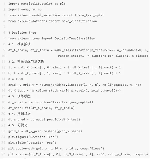 遍历树,并将关键特征与确定的条件语句进行比较。它是降到左边的子分支还是降到右边的子分支取决于结果。一般来说,更关键的特性更接近根,它能处理离散表达式和连续表达式。具体基本原理参考:深入浅出理解决策树演算法(一)-核心思想 – 忆臻的文章 – 知乎,下面给出代码的实现。