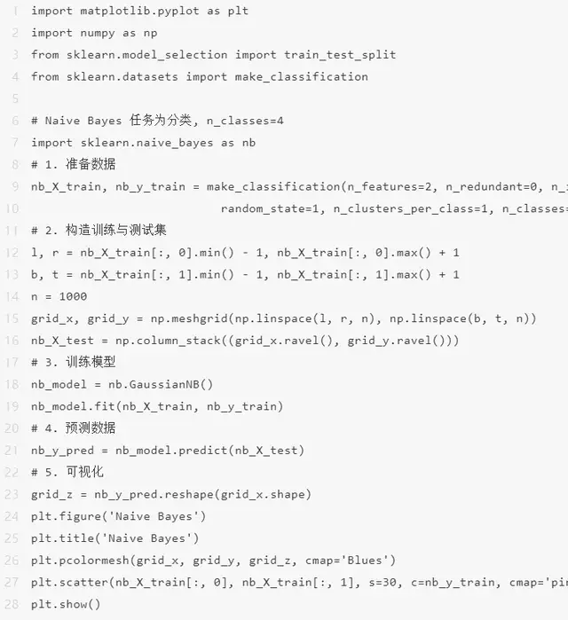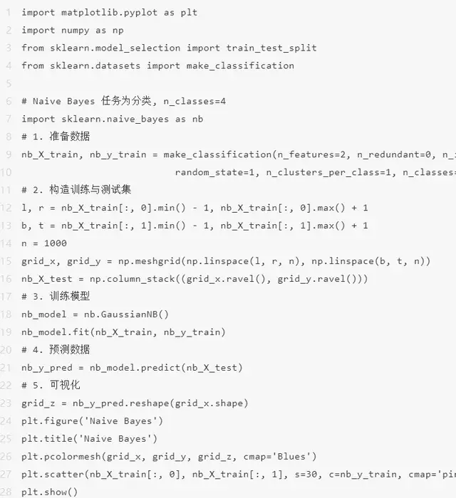 朴素贝叶斯是一类基于贝叶斯定理的进行分类方式,它会假设两个类中的某个特征与其他特征无关。这个数学模型不仅非常简单,而且比许多高度复杂的进行分类方式表现得更好。具体基本原理参考:朴素贝叶斯演算法基本原理小结 – 刘建平Pinard,下面给出代码的与此同时实现。