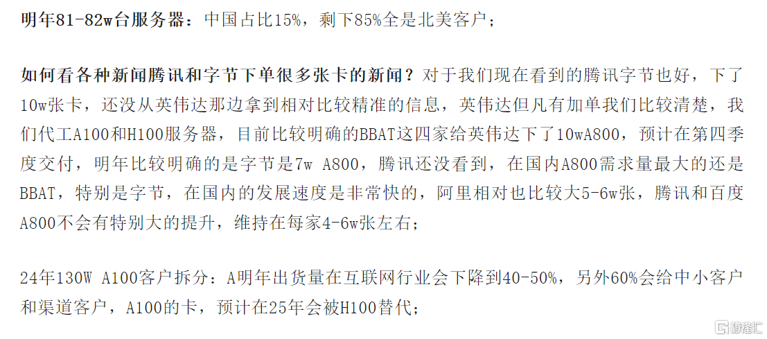 本周日,轻工业张宽的这份代工厂研究者沟通交流纪要在政府机构圈里广为流传,文本主要就是BBAT和二进制颤动向英伟达下了大批AI晶片订货,而轻工业张宽代工厂了英伟达的A100和H100伺服器。