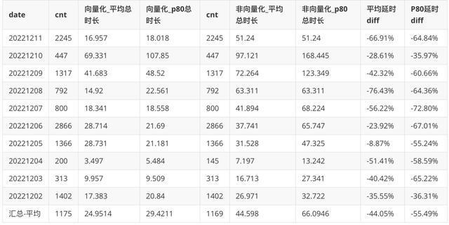 升级 Doris 向定量版后,犯罪行为预测网络平台以SQL 粒度来统计查阅耗时 P80 和均值,耗时 P80下降 70%,平均耗时下降 54%。统计口径:汇总 12.04-12.11 期间,犯罪行为预测 SQL 粒度查阅执行天数(未含排队)