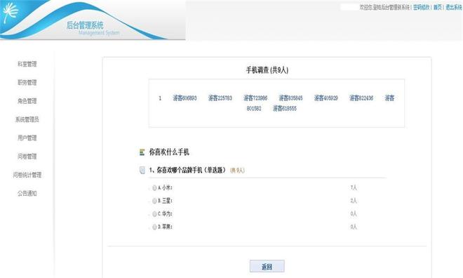 15.在13点基础上,针对须要采用者登入的问卷展开调查时,点选总参与人数后,要能表明具体参与展开调查的采用者联系电话,再次点选具体某两个联系电话时,能表明这个采用者具体的展开调查报告(此处,若是可数次重复展开调查的问卷展开调查,则以采用者最后一次的结果表明);