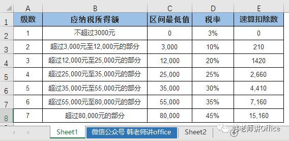 IF冗余排序对个人所得税,是大家普遍能够想到的方式,如下表所示图: