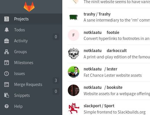 可能最著名的 Git 出访界面是如前所述网页的,像 GitHub、开放源码的 GitLab、Savannah、BitBucket 和 SourceForge 这些中文网站都是如前所述网页端的 Git 界面。这些站点为面向公众和面向社会的开放源码应用软件提供了最大限度的标识符代销服务项目。在一定程度上,如前所述浏览器的图形界面(GUI)能尽量的减缓 Git 的学习曲线。下面的 GitLab 界面的截图: