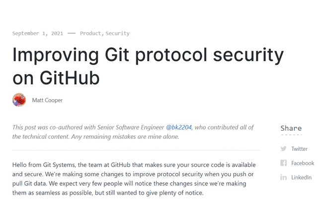 GitHub 非官方正式宣布,早已开始更动 SSH 全力支持的密钥并删掉未身份验证的 Git 协定,简而言之: