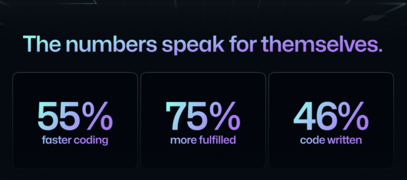 非官方研究表明,在采用 GitHub Copilot 的开发人员中,有 90% 则表示能更慢地完成任务,其中 73% 的人能更快地保持通畅并节约心力。仅约 75% 的开发人员在采用 Copilot 时感到更有满足感,并且能著眼于工作。