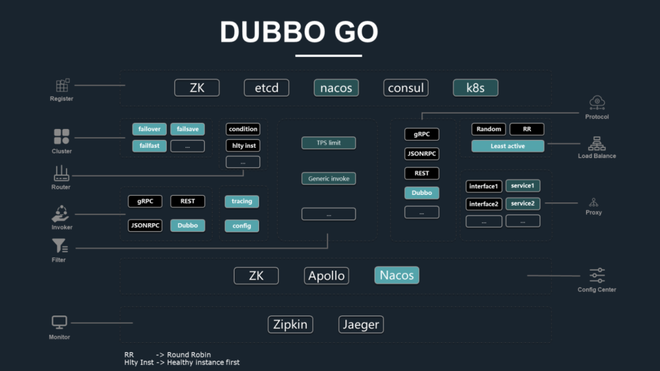 Dubbo-go 上周还同时实现了 REST 协定以及 gRPC 的全力支持,贯通了 Spring Cloud 和 gRPC 自然生态,再加之与 Java Dubbo 的互联互通,应用领域情景广为。因此,它被其合作开发人员叫作“all-in-one”的 RPC 架构。