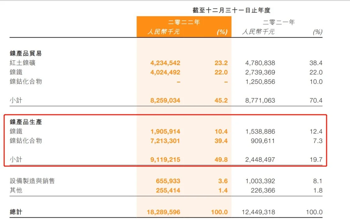 据力勤资源年报表明,HPAL工程项目共规划六条镍钴化合物锻造线,总计年设计新增产能为12万合金吨镍钴化合物(包括14250合金吨钴)。2022年时,HPAL工程项目一期的两条镍钴化合物锻造线,总计年设计新增产能为3.7万合金吨镍钴化合物(包括4500合金吨钴),和该工程项目二期的另一条镍钴化合物锻造线,年设计新增产能为1.8万合金吨镍钴化合物(包括2250合金吨钴)已经全部建成投产。