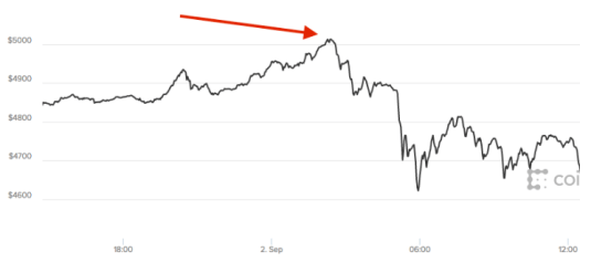 就在才刚往后的这个周日(具体内容天数是美国南部天数 9 月 1 日晚),比特币的产品价格在 Coindesk BPI 产品物价指数上首度冲破了 5000 英镑再创历史新高。但是此次冲破只是间歇性的,在随即的两个半小时里,其产品价格又上升了约 5% 。