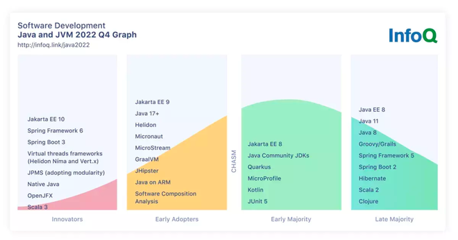 Java 17 早已进入了晚期选用者阶段,因为一些架构,尤其是 Spring,早已将 Java 17 作为基线。
