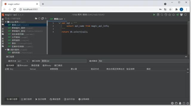 magic-api 是一个如前所述Java的USB加速合作开发架构,撰写USB将通过magic-api提供的UI介面顺利完成,手静态射为HTTPUSB,无须表述Controller、Service、Dao、Mapper、XML、VO等Java第一类方可顺利完成常用的HTTP APIUSB合作开发。