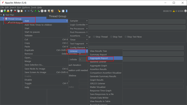 在Test Plan上点击右键,创建缓存组(Thread Group)