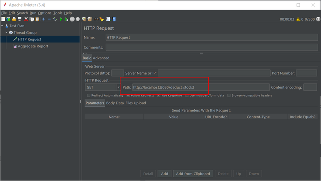 Number of Threads 与此同时并发缓存数Ramp-Up Period(in-seconds) 代表隔多长时间执行,0代表与此同时并发。假设缓存数为100, 估计的点击率为每秒10次, 所以估计的理想ramp-up period 是 100/10 = 10 秒Loop Count 循环次数这儿给出500是为的是直接试验并发500抢,看看能不能正好把500个货物抢完。