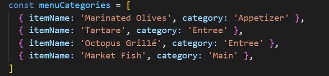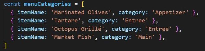 他们须要将其缩减为一系列独有的类型,例如 [Appetizer,Entree,Main]