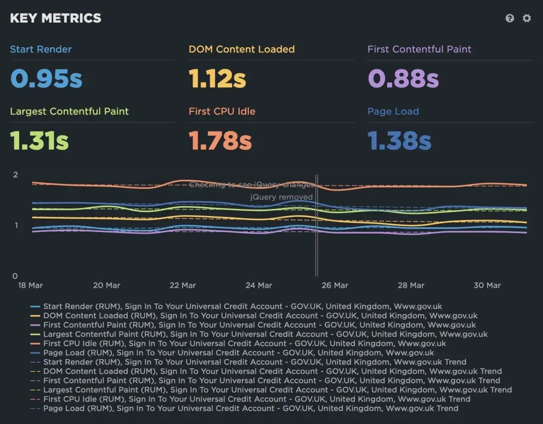 Matt 也在twitter上撷取了几段统计数据,说明了在删去 jQuery 后许多关键性分项获得了强化。