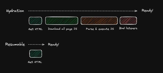 Resumable vs. Hydration-https://qwik.builder.io/docs/concepts/resumable/