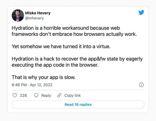 Hydration is Pure Overhead-https://www.builder.io/blog/hydration-is-pure-overhead