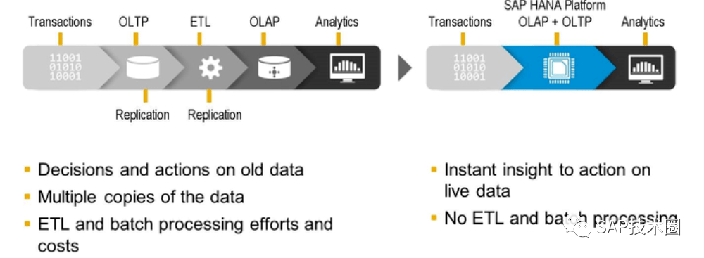 PDP预测是S/4HANA商品的两大看点,较之于现代的透过ETL辅助工具展开统计数据抽出接着预测的商业模式。PDP预测能提供更多动态的预测结论并应用于流程中,如下表所示图右图,这主要就得力于HANA资料库的优点和VDM数学模型。须要表示的是,S/4HANA商品便携式的PDP预测机能归属于BI预测的最高阶方式,主要就服务于更智能化的流程处置,假如须要更高阶其它战略预测,则仍然须要借助内部的BI辅助工具或是BW商品等展开更深层的商务人士智能化预测。