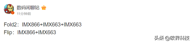 今日@多媒体闲谈站增添了vivo旗下两款即将发布的卷曲屏智能手机图像技术标准:vivo Fold 2后摄选用三摄计划,转势主摄为SonyIMX866感应器,1/1.49″寸的CCD面积,全力支持OIS成像HDR,作为主摄摄影机画素功能非常齐备;梅塞县IMX663TNUMBERMP摄影机增添108°TNUMBERMP超长形变,和IMX663专业人像摄影机打造出无形变的企业法人像。