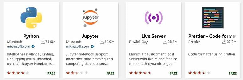 VS Code Marketplace 少于 40,000 个扩充,可协助开发相关人员更高效率地合作开发标识符、软件系统某一词汇的软件程序,甚至将钻孔布署到生产自然环境中。许多扩充的加装浏览数目十分大,比如,Jupyter 扩充有 52M 的浏览量,Prettier 扩充有 27M,还有许多也已经少于 10M 。